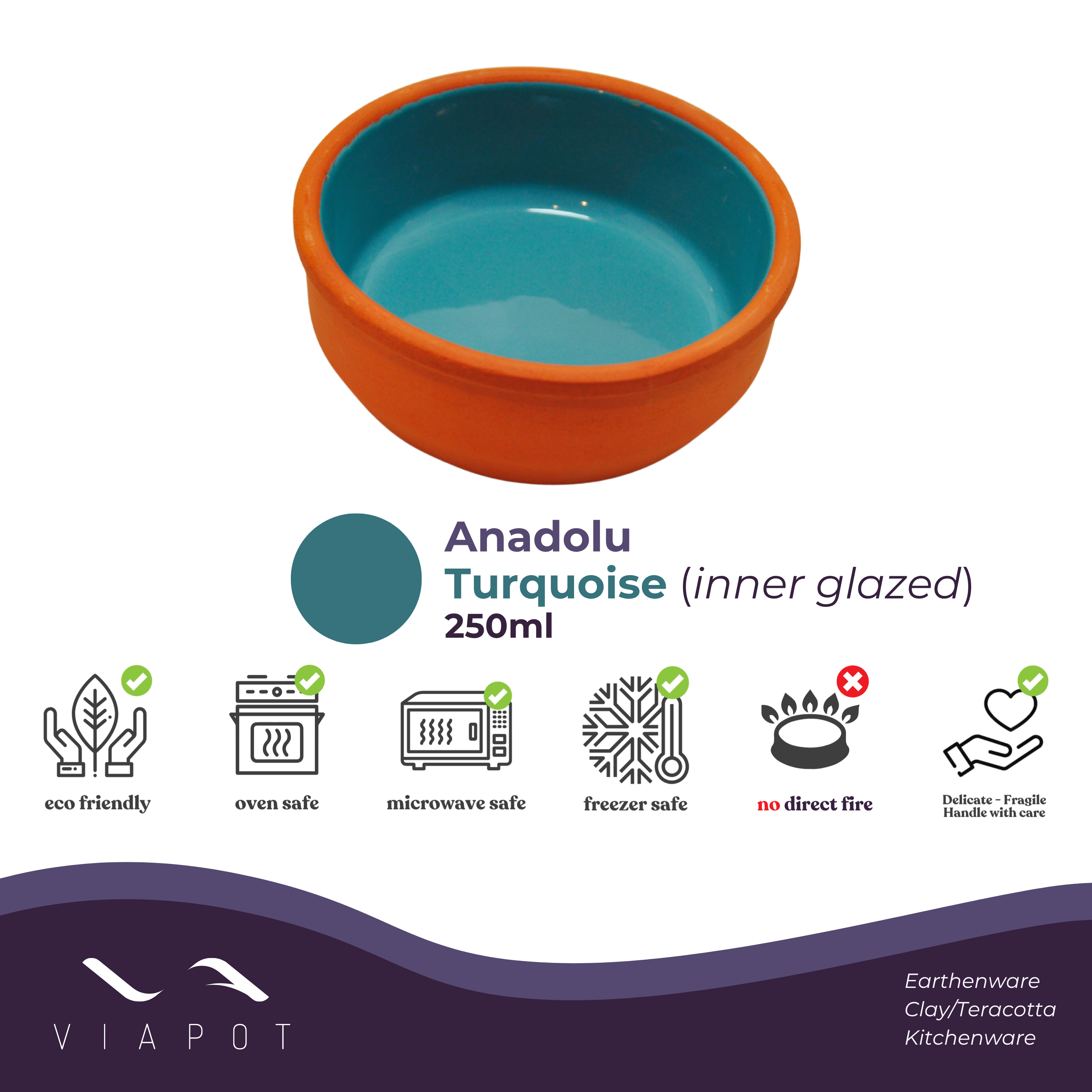 Explore other color options: Experience the elegance of Viapot Anadolu Bowls in a variety of inner glazed finishes, including Green, Light Grey, Brown, Turquoise, and Bordo.