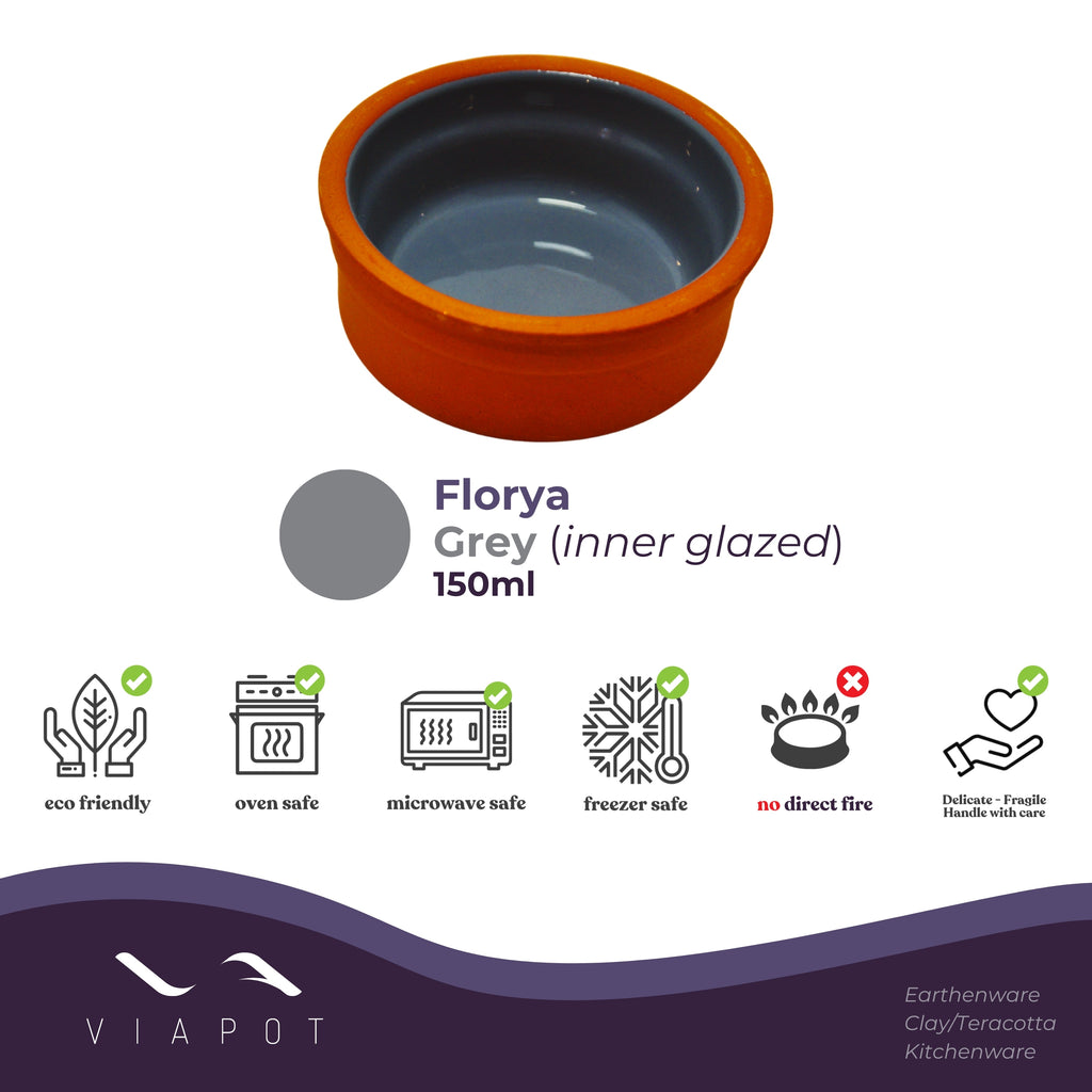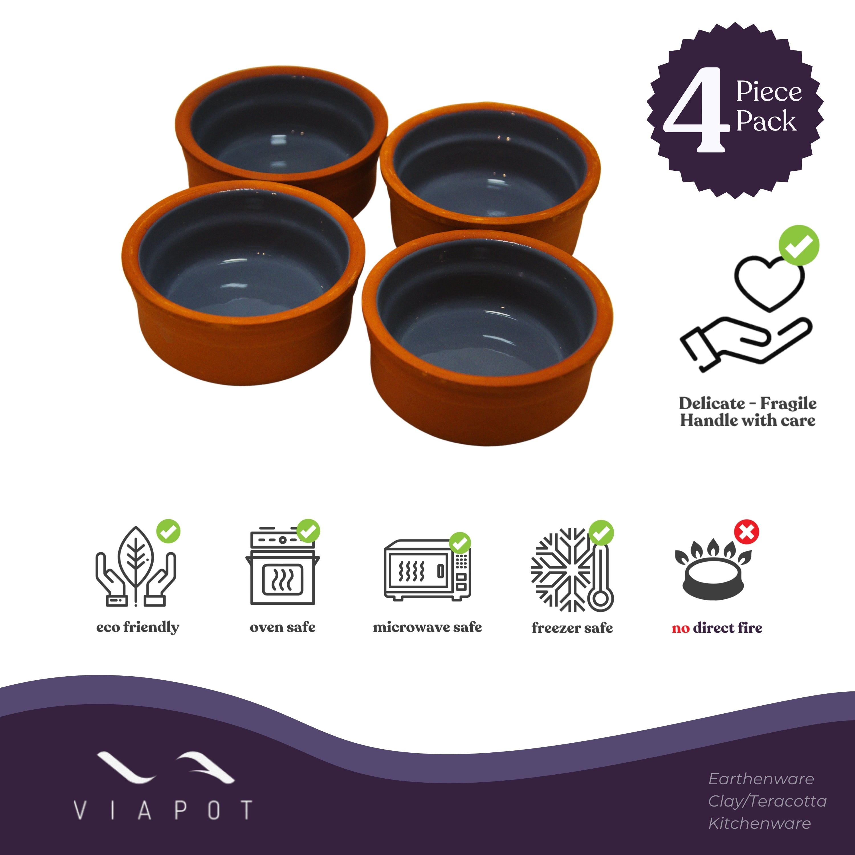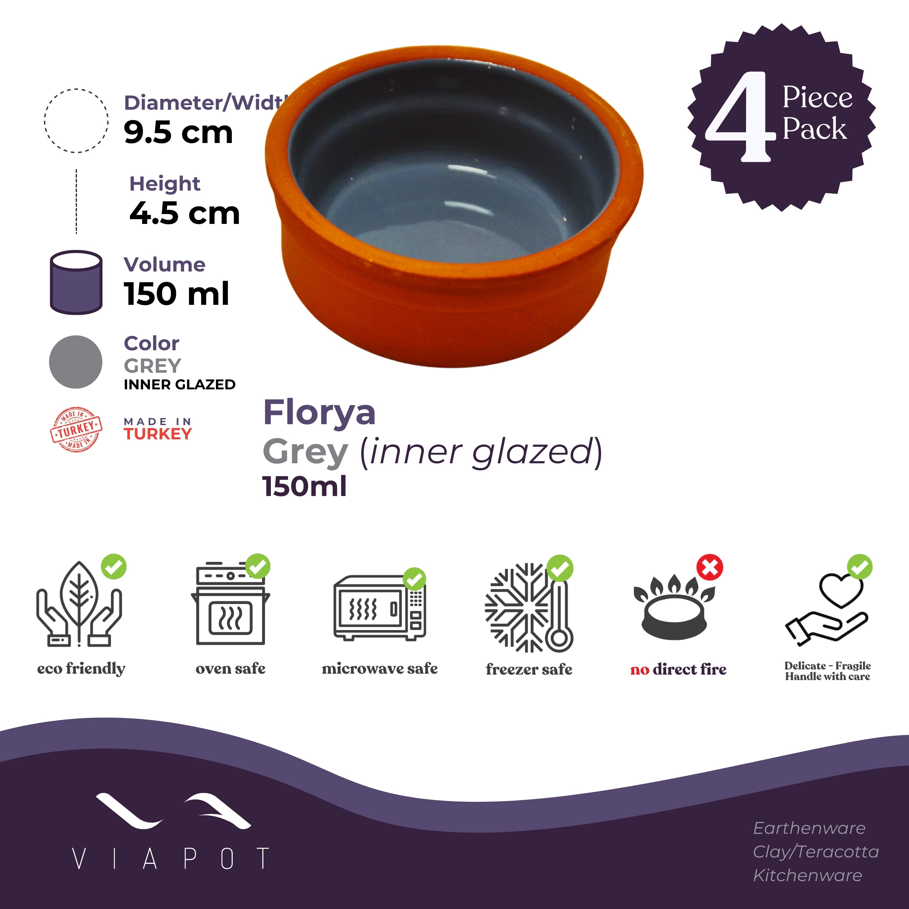Viapot Florya Premium Terracotta/Clay Katori & Bowls | Grey (Inner Glazed) Food Safe | Set of 4 Bowls