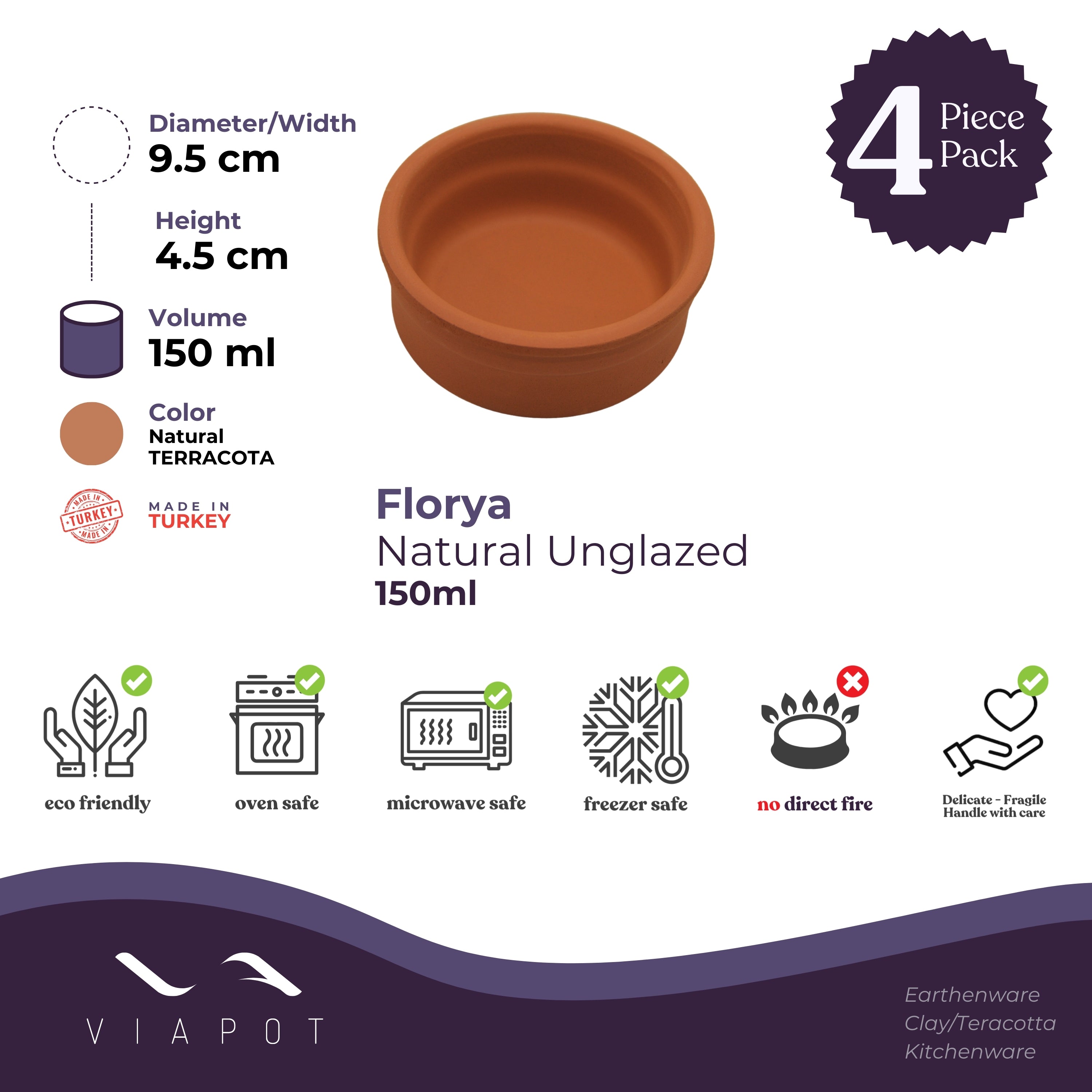 Viapot Florya Premium Terracotta/Clay Katori & Bowls | Natural | Set of 4 Bowls