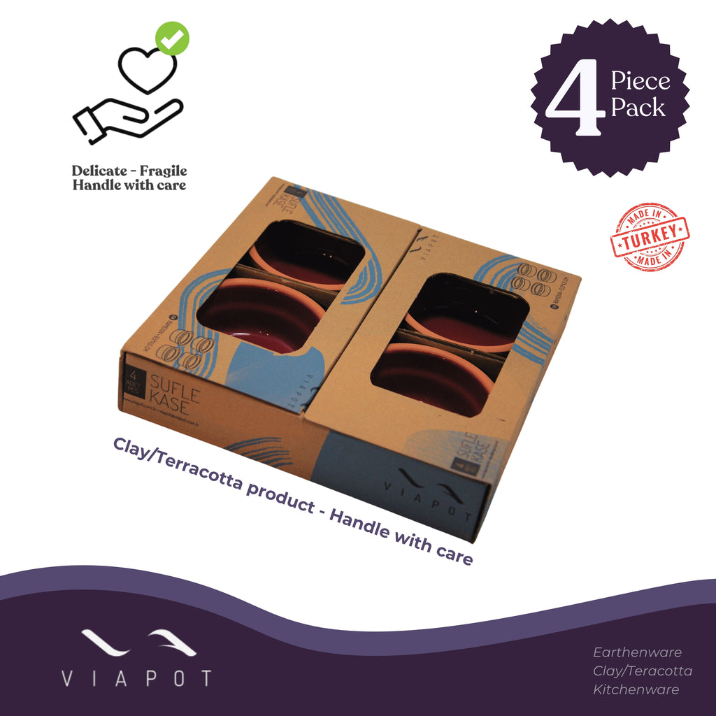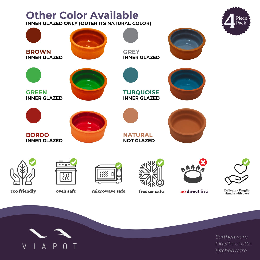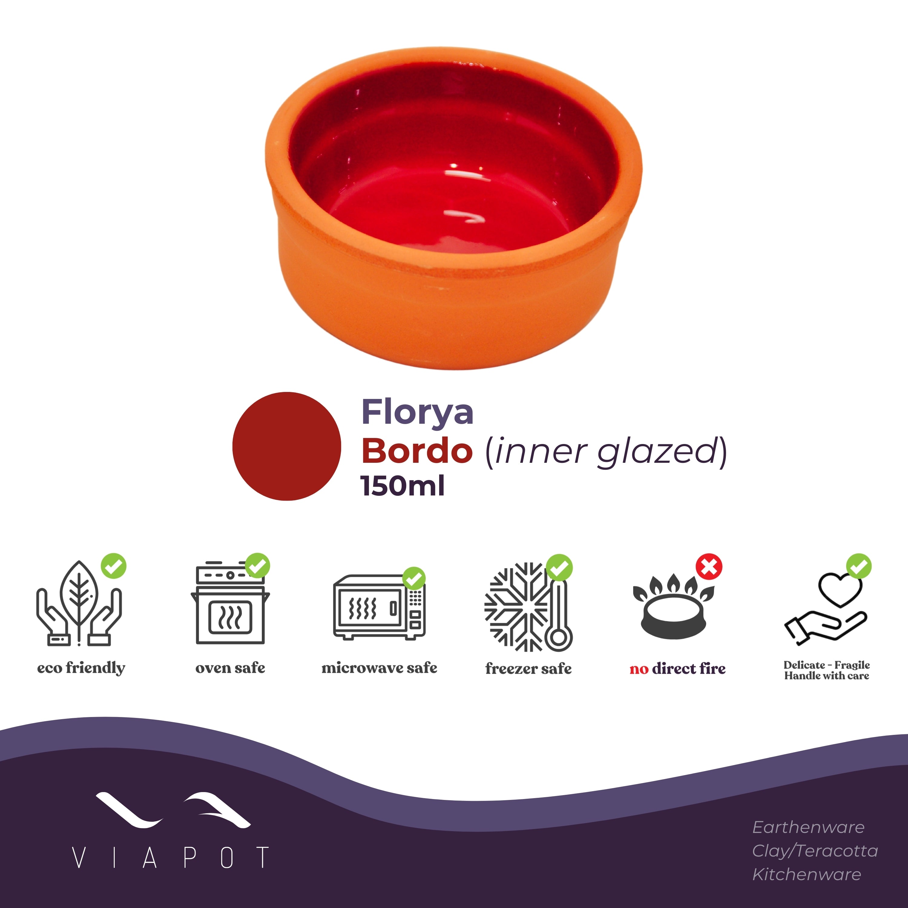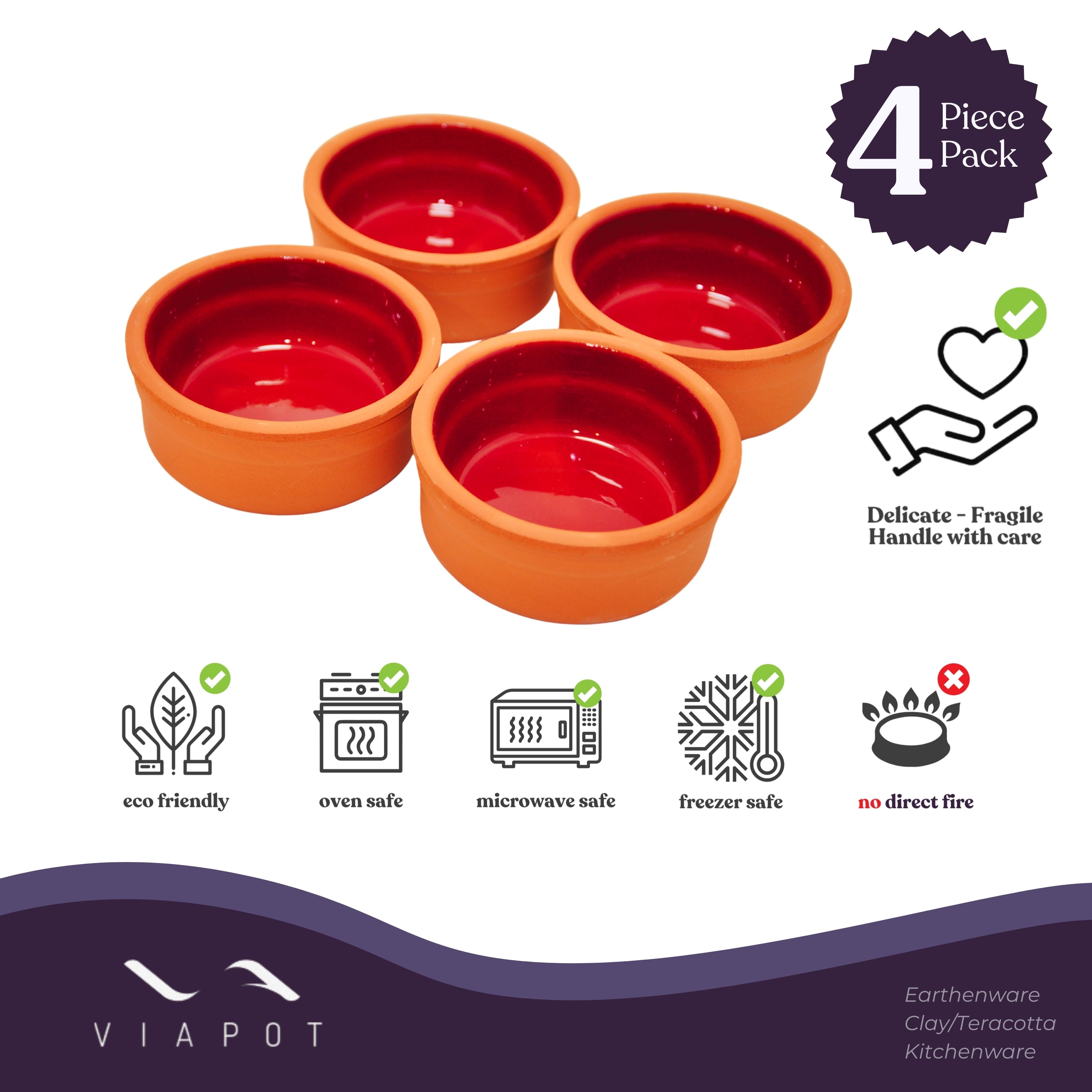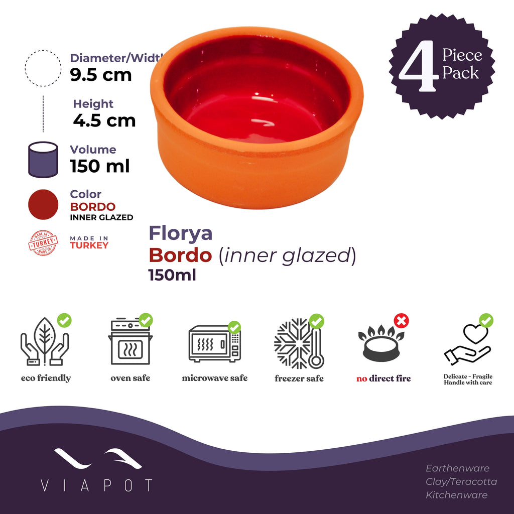 Viapot Florya Premium Terracotta/Clay Katori & Bowls | Bordo (Inner Glazed) Food Safe | Set of 4 Bowls