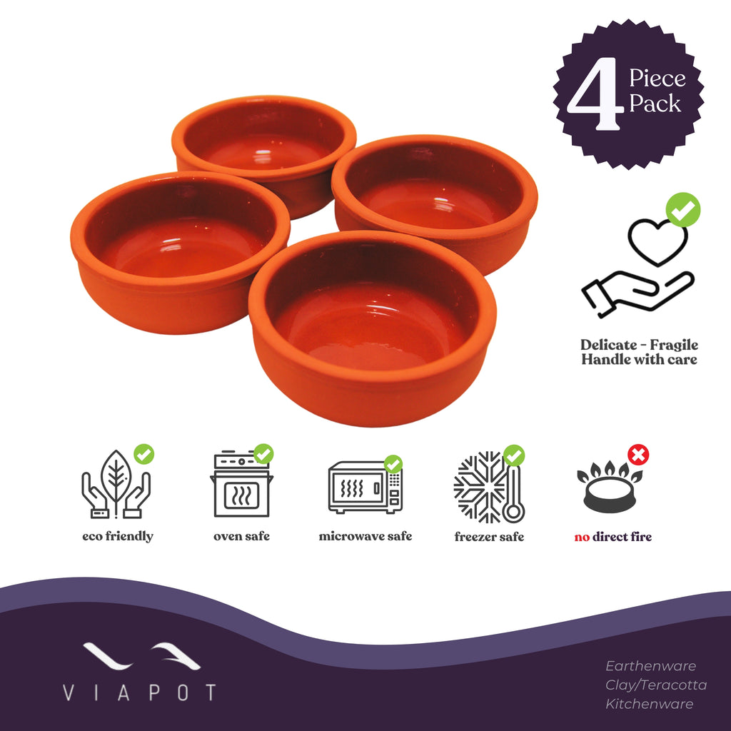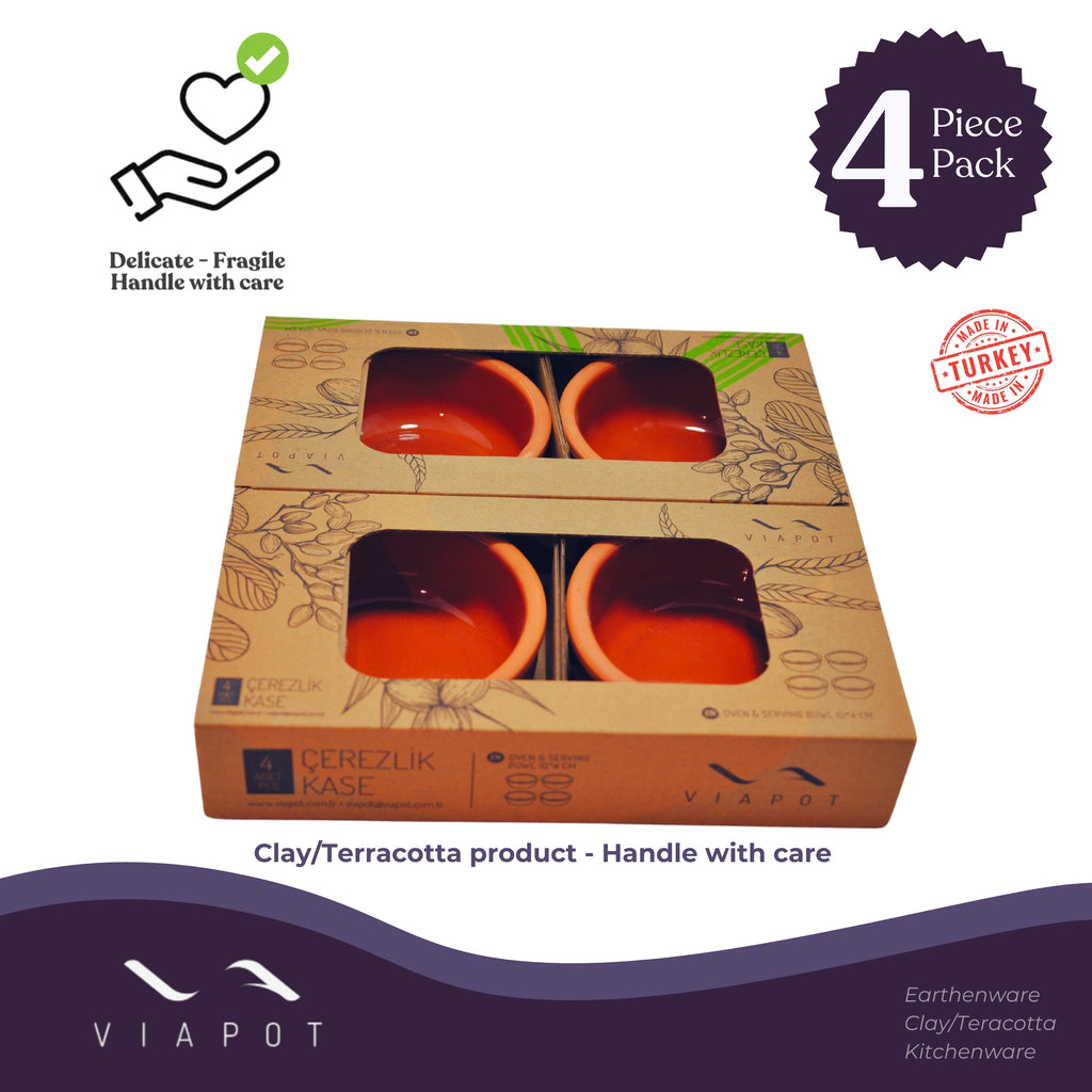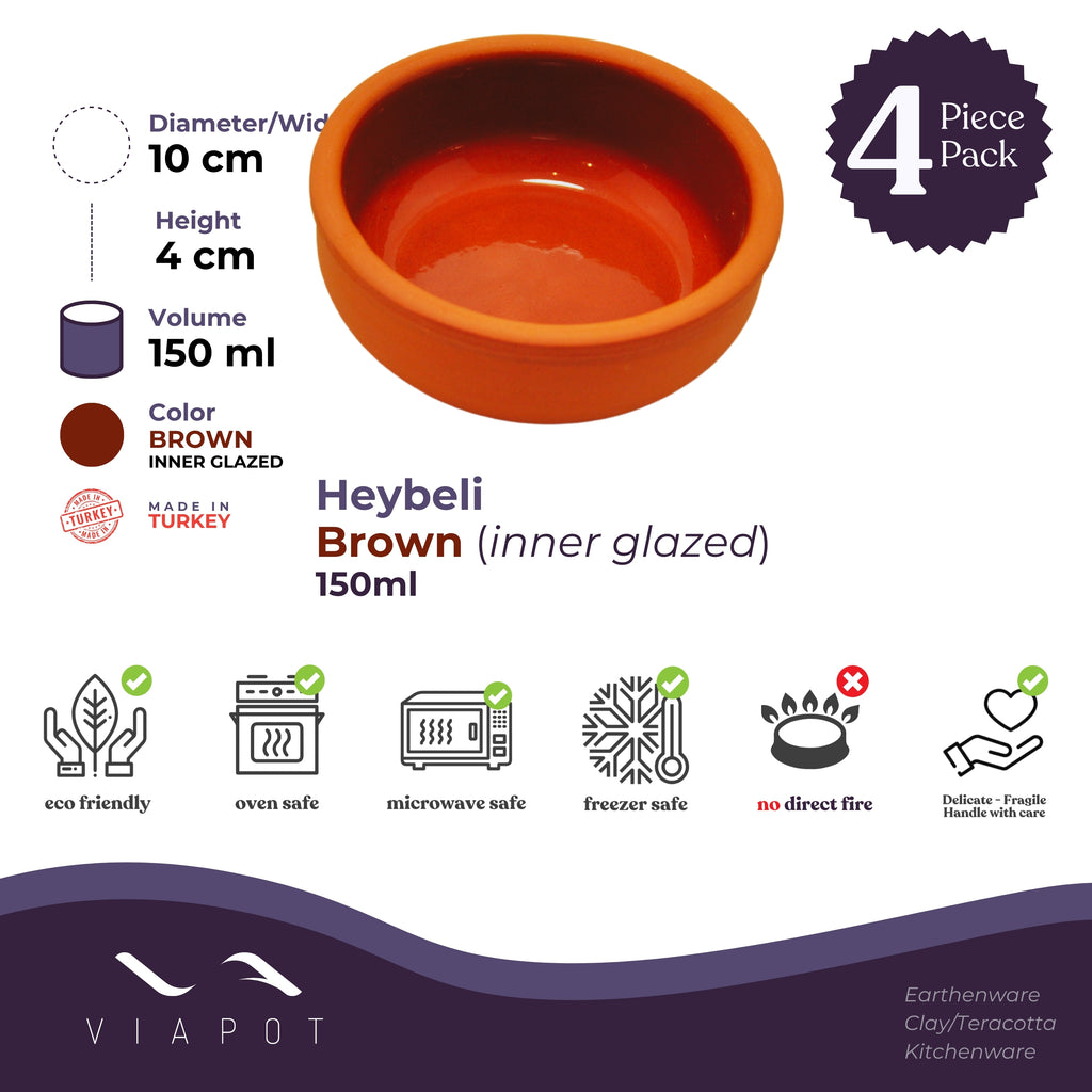 Viapot Heybeli Premium Terracotta/Clay Katori & Bowls | Brown (Inner Glazed) Food Safe | Set of 4 Bowls