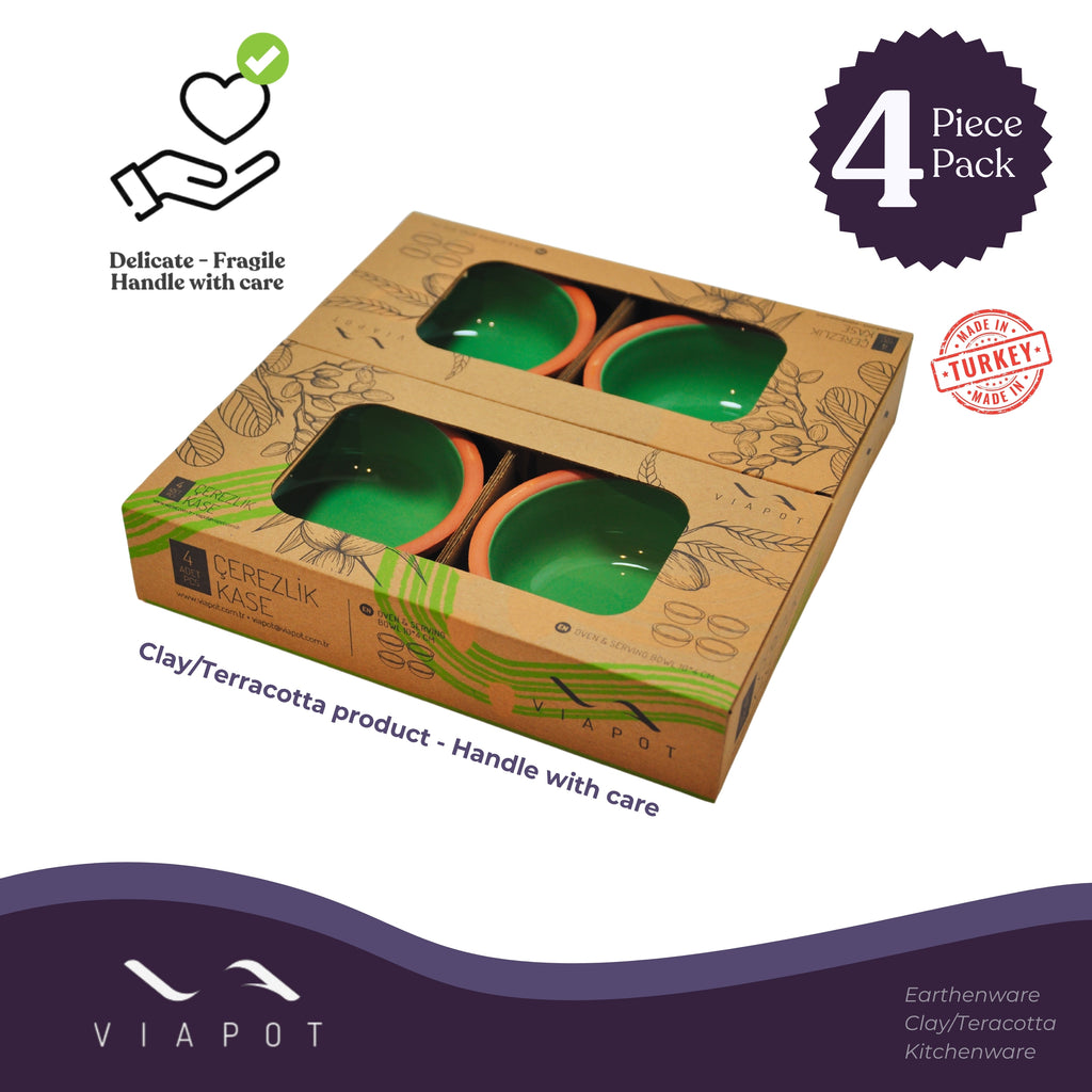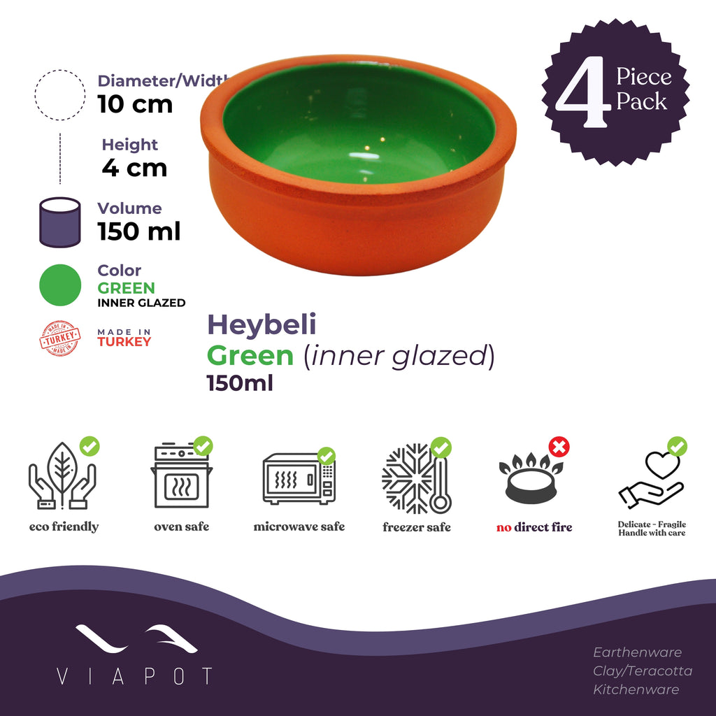 Viapot Heybeli Premium Terracotta/Clay Katori & Bowls | Green (Inner Glazed) Food Safe | Set of 4 Bowls